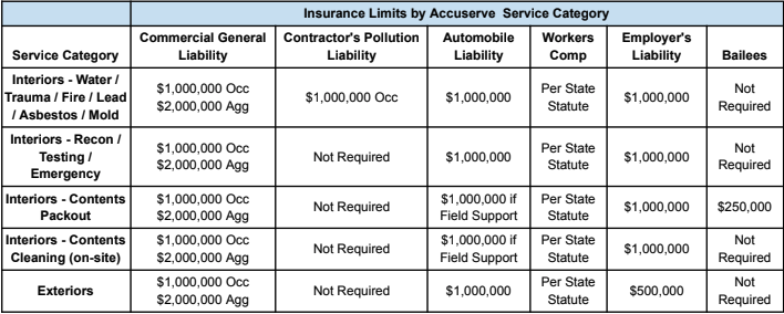 - Contractor Pollution Liability: $1,000,000 Each Occurrence
